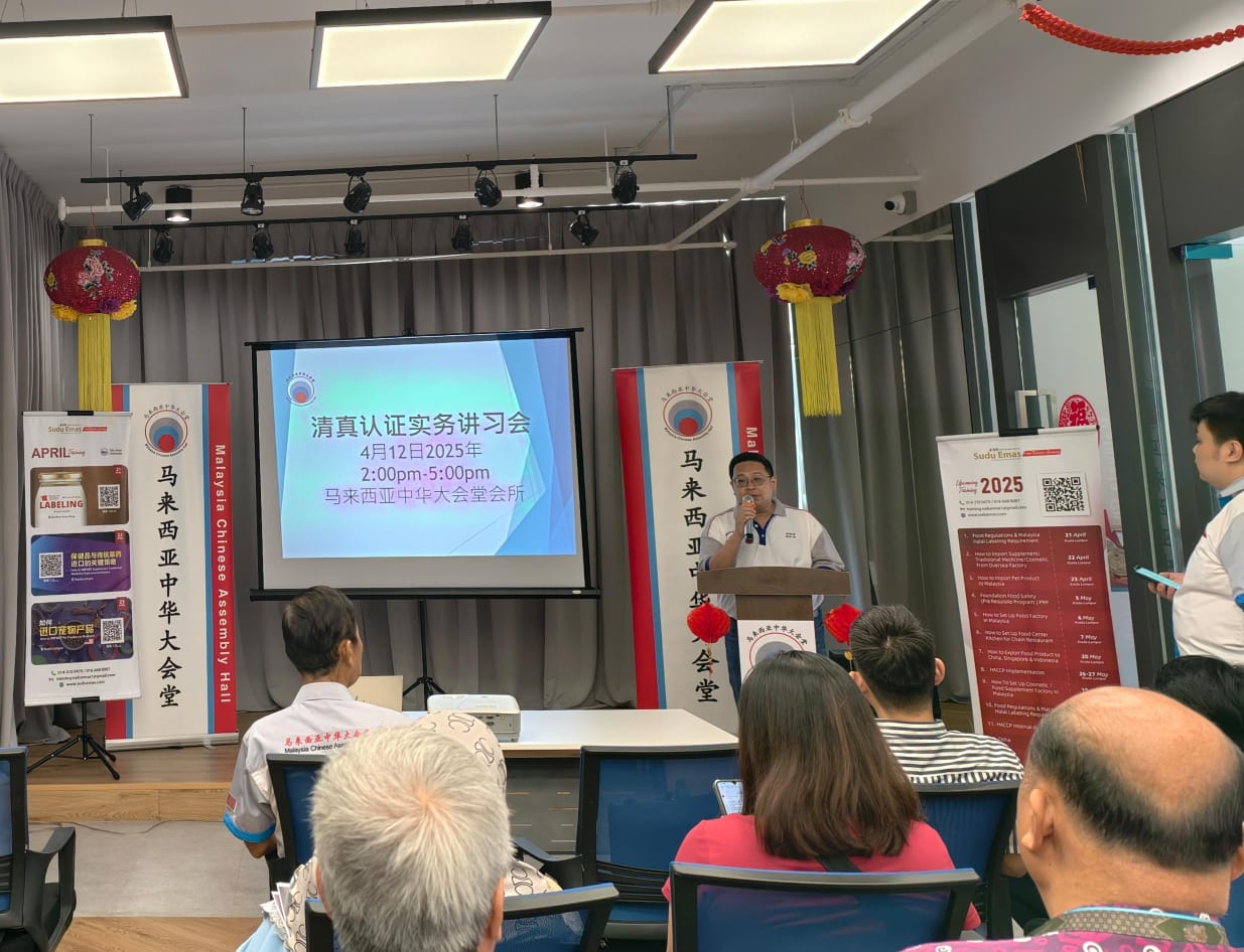 2025年4月12日,由马来西亚中华大会堂(马华堂)主办的“清真认证实务讲习会”顺利举行。本次讲习会邀请到海内外知名清真认证专家及顾问黄美缘主讲,深入讲解清真认证的种类、大马清真认证的基本申请条件,并通过实际个案进行分析分享,内容丰富,实务性强。